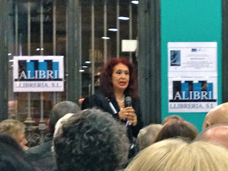 Lidia Falcón en el acto de presentación de la novela en Barcelona