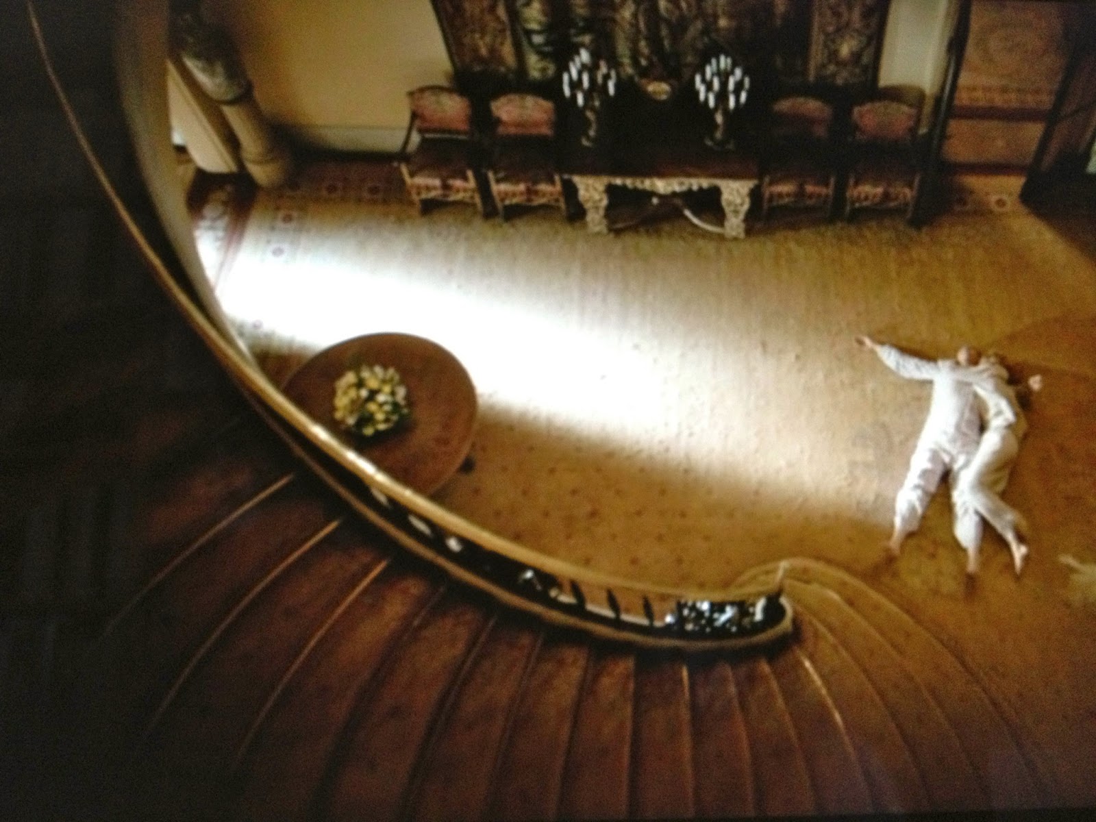 Ver deslizarse por una magnífica barandilla al presidente Perón y a su esposa podría ser histriónico, pero aquí se convierte en una expresión de libertad vital frente a la angustia del viaje, en un eufemismo simbólico. Cuando se produce la despedida pública de la pareja presidencial en la Casa Rosada, en el fondo vuelve a aparecer la escalera como testigo de su gozosa intimidad.
